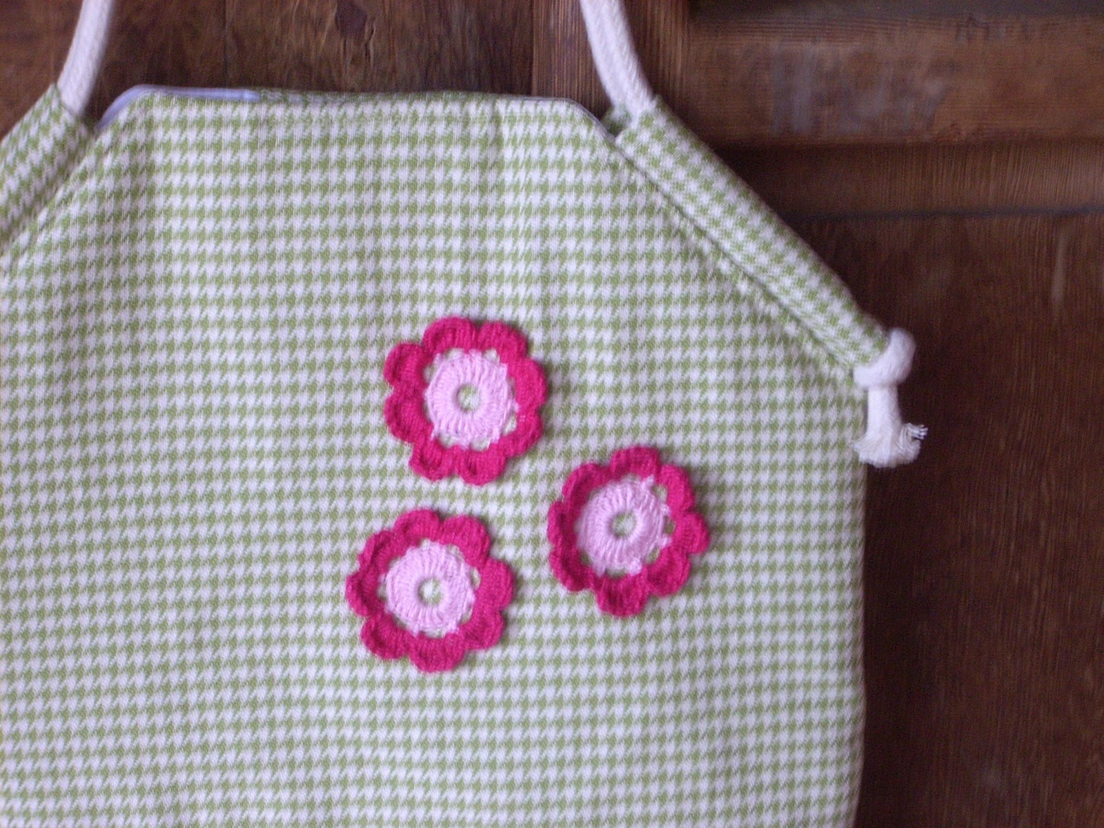 The usual model is the square of 16 ", I replace the zipper by clip with wood button, I made machine quilting at the edges and hand quilting in the center, I put two pockets inside, one with bellows, a needle case, a scissors case and thread holder with flap to prevent tangling with other things. And finally a decorative pin.